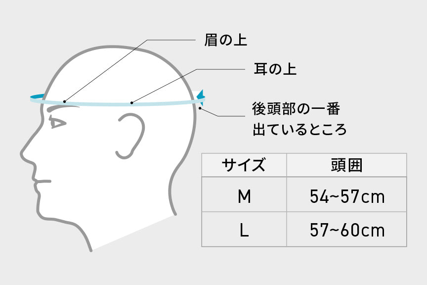 | サイズ | M(54~57cm)、L (57~60cm) |