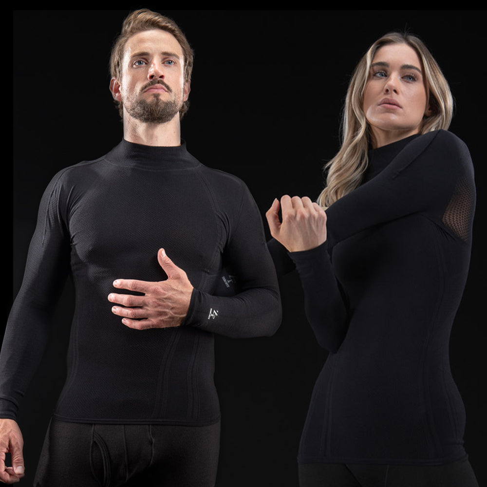 ベースレイヤーとして身体を環境から守り、暖かさと冷却、安心と自信を同時に提供。