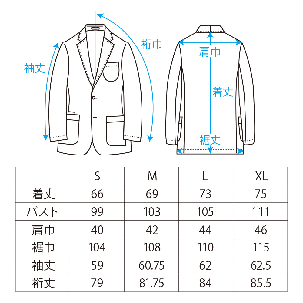 袖丈 | 59 | 60.75 | 62 | 62.5 |